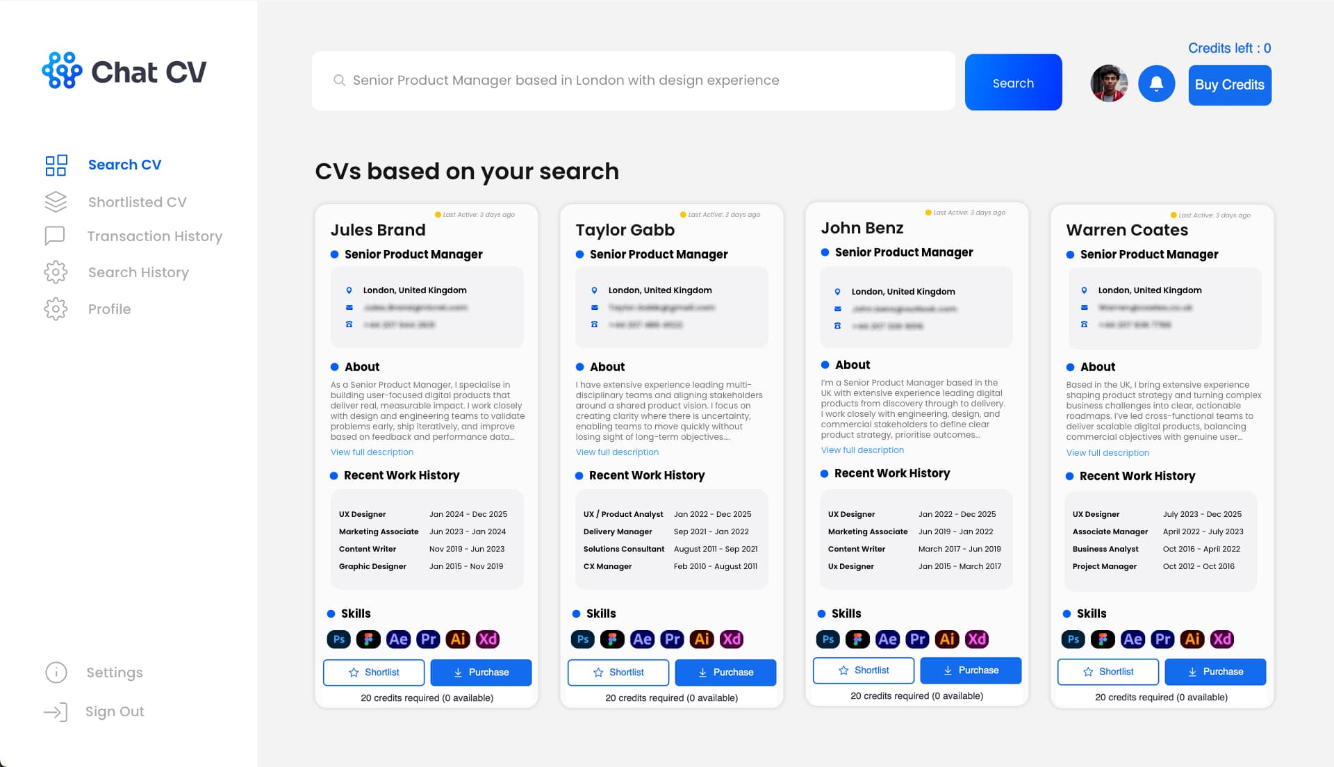Each CV costs credits depending on the type of occupation and the last active time of the CV